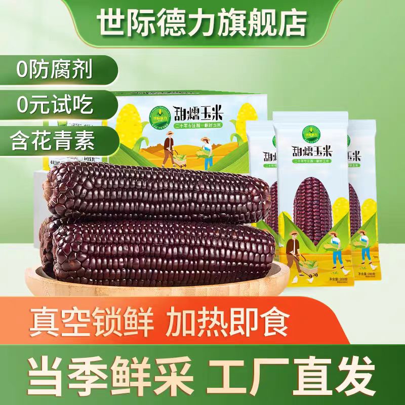 北方甜糯黑玉米真空裝粘苞米低脂飽腹代餐早餐粗糧8根世際德力